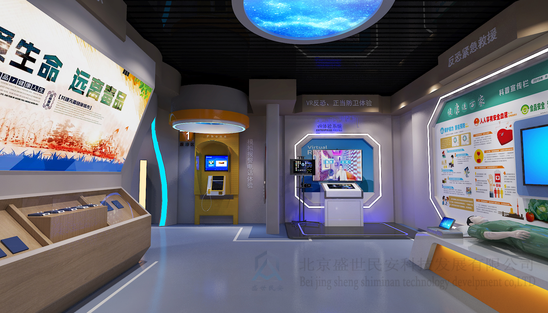 涅陽街道安防體驗館總投資近百萬,包含反恐、禁毒、治安、消防、交通等安全體驗?zāi)K。